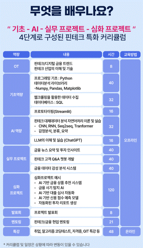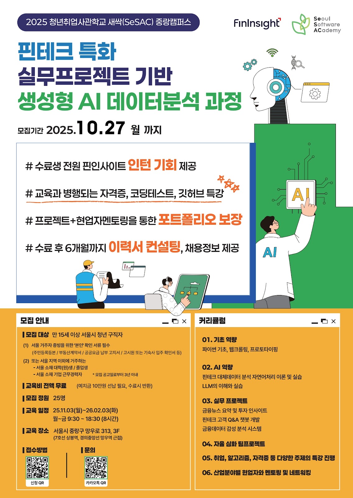 프로그램명 | 핀테크 특화 실무프로젝트 기반 생성형 AI 데이터 분석 과정 (청년취업사관학교 중랑캠퍼스) |
