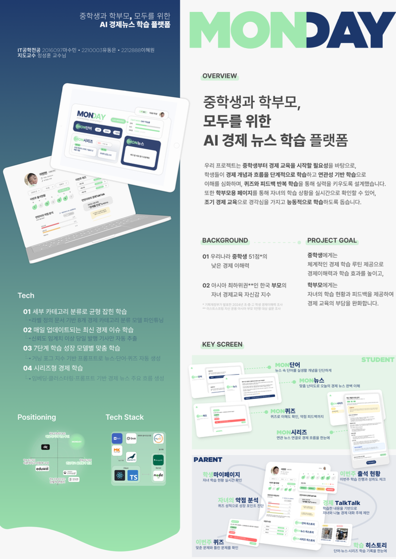 MONDAY는 뉴스를 촬용한 맞춤형 경제 교육 플랫폼으로, 중학생 눈높이에 맞는 난이도로